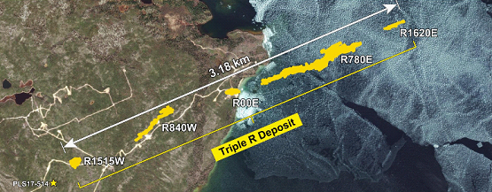 PLS項目目前已發現的礦體呈東西走向,從西到東依次為R1515W,R840W, R00E,R780E 和R1620E,長度約3.17 公里,組成加拿大薩斯喀徹溫省已發現的最長的高品位鈾礦成礦帶,亦是全球最大的待開發高品位鈾礦項目之一。當前勘探結果表明,PLS項目未來仍具備較高的資源增長潛力前景。